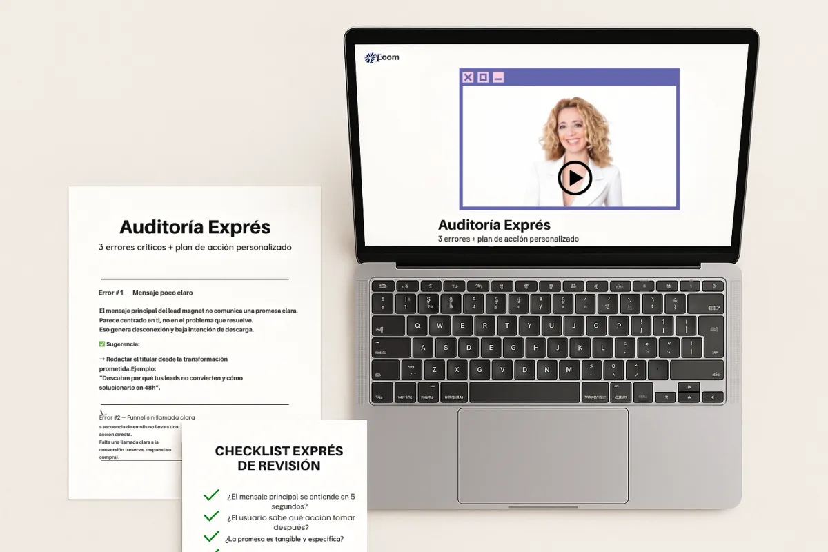 Reviso a fondo tu funnel, lead magnet o secuencia.Detecto qué parte del sistema está bloqueando la venta o debilitando la acción.